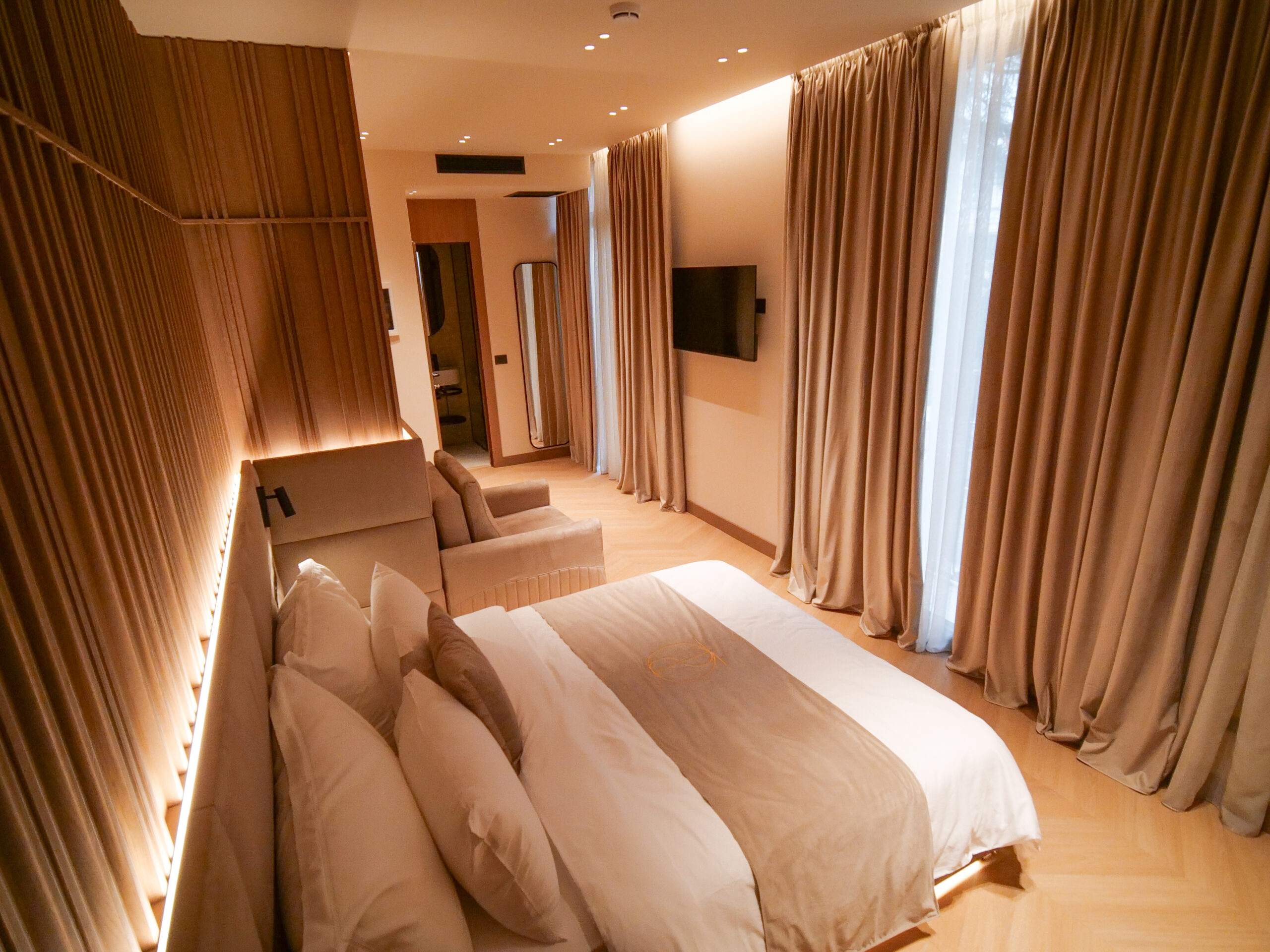 Discover a peaceful retreat in our 13 m² Double Room, thoughtfully designed to offer maximum comfort in an intimate setting. This air-conditioned sanctuary features elegant hardwood or parquet flooring and soundproof walls, ensuring a serene environment away from the city’s hustle and bustle.