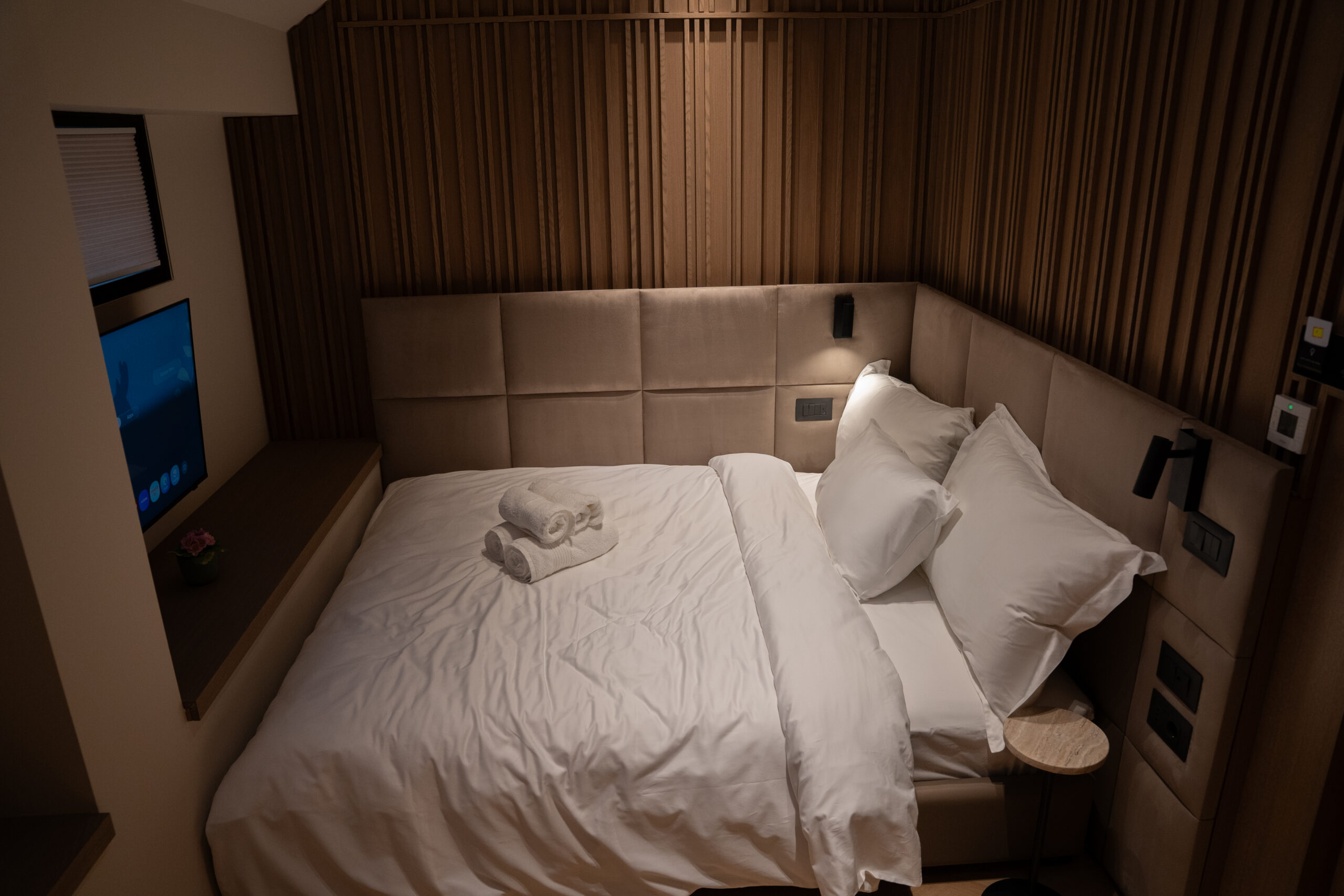 Enjoy a sophisticated stay in our 16 m² Comfort Double Room, where modern design meets urban convenience. This air-conditioned retreat features a private balcony, offering a perfect spot to take in the vibrant city views with your morning coffee.
