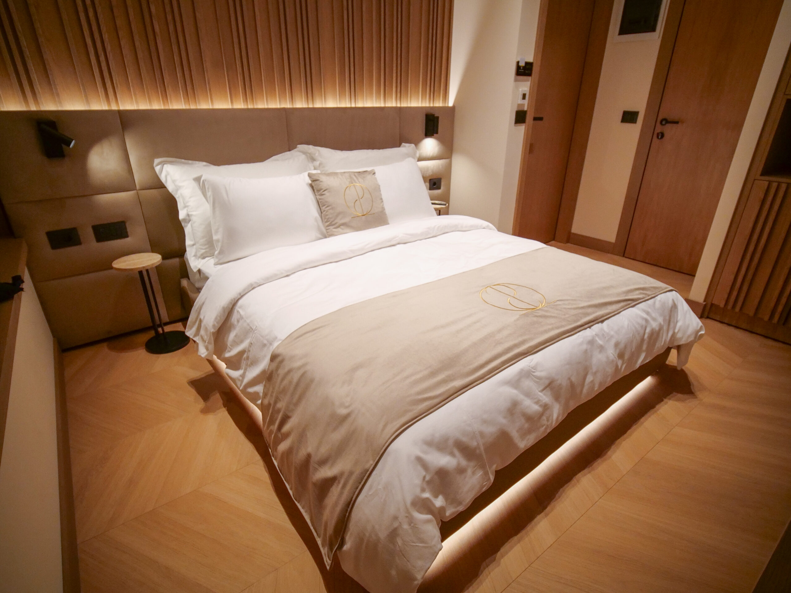 The interior is elegantly finished with hardwood or parquet floors and is fully soundproofed to ensure a restful night’s sleep on the highly-rated queen bed. For your entertainment, the room includes a flat-screen TV with satellite channels, while a minibar and a dedicated tea/coffee maker are available for your daily refreshments.